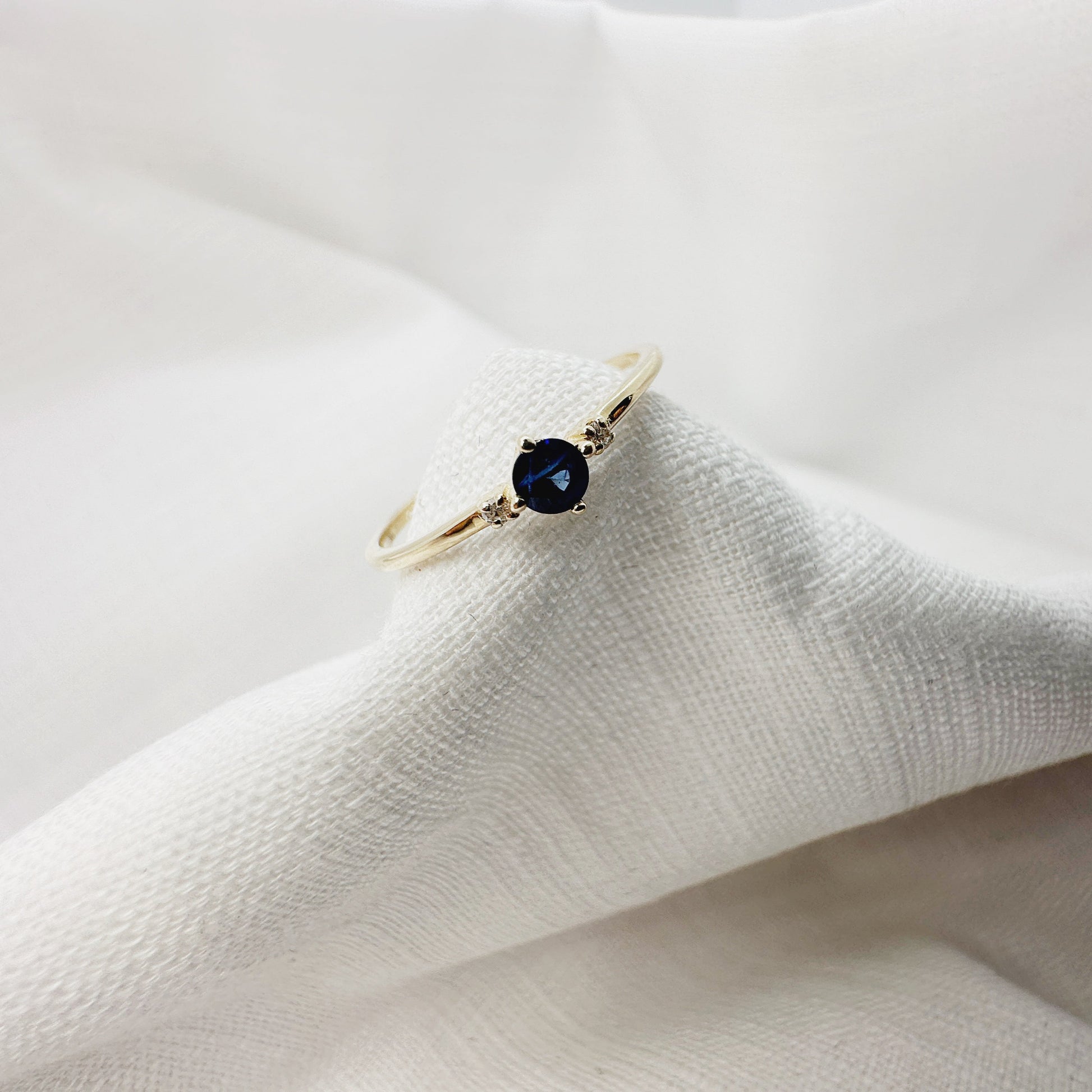 Anillo con un Zafiro y dos mini diamantes