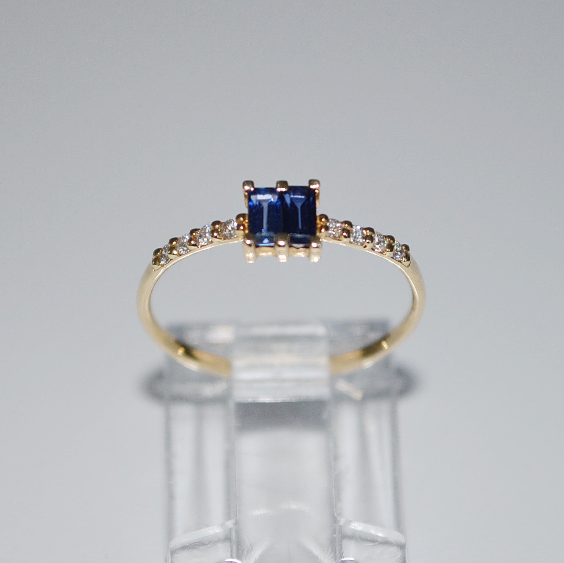 Anillo con dos Zafiros y 4 diamantes de cada lado.