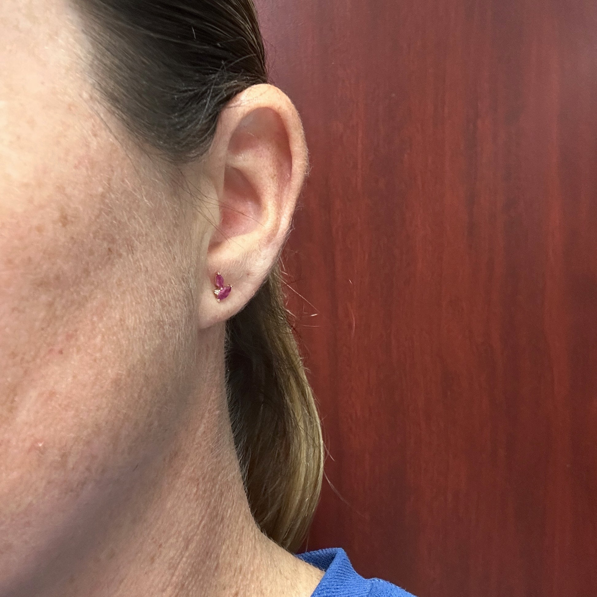 Aretes sofisticados con rubíes en corte marquise, realzados por diamantes de 0.05 ct que delicadamente forman un diseño de hojitas, aportando elegancia y distinción.