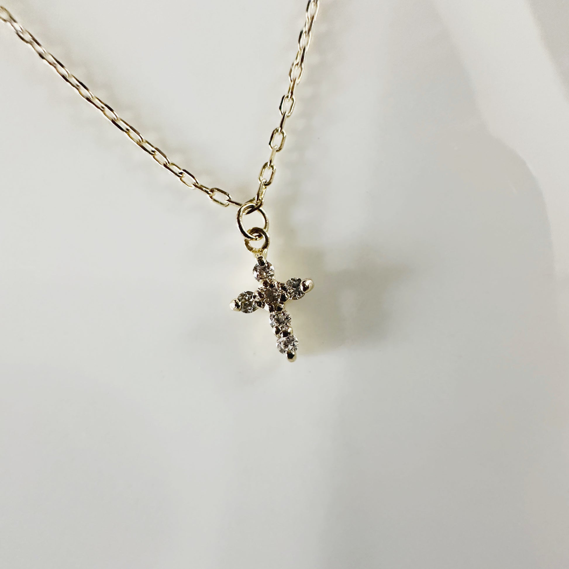 Cadena de oro con mini cruz de diamantes