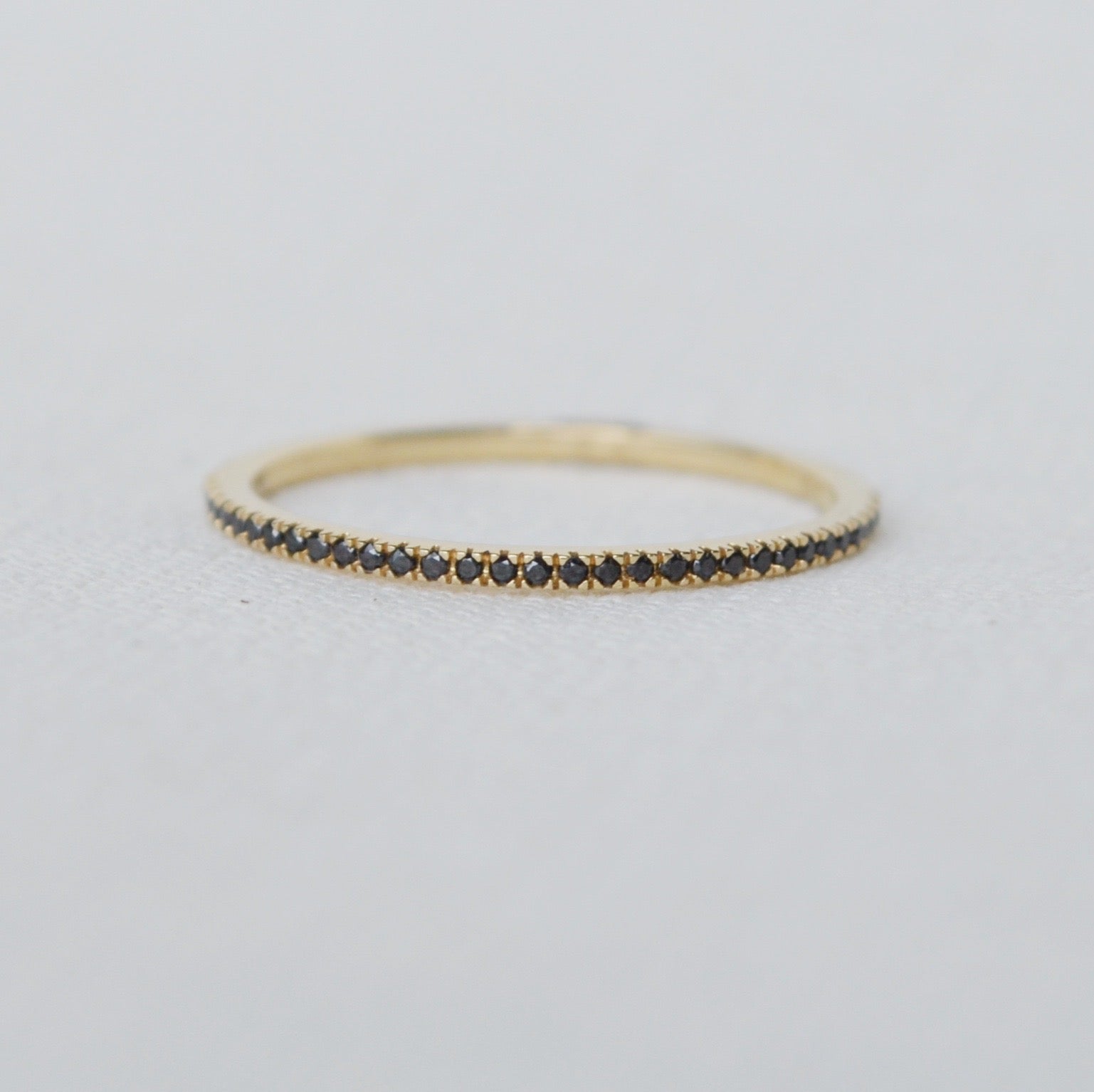 Churumbela de mini diamantes negros montados en un anillo de oro amarillo de 14K.