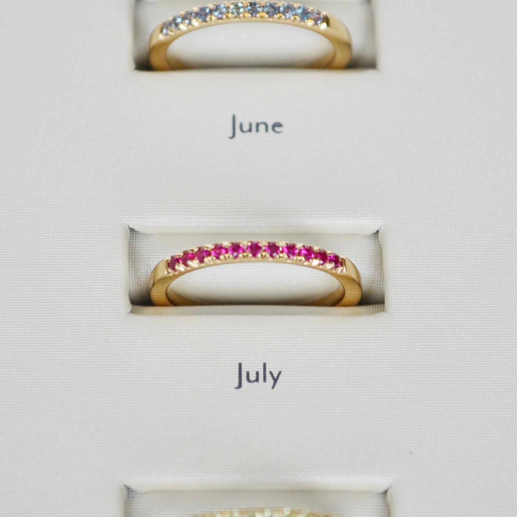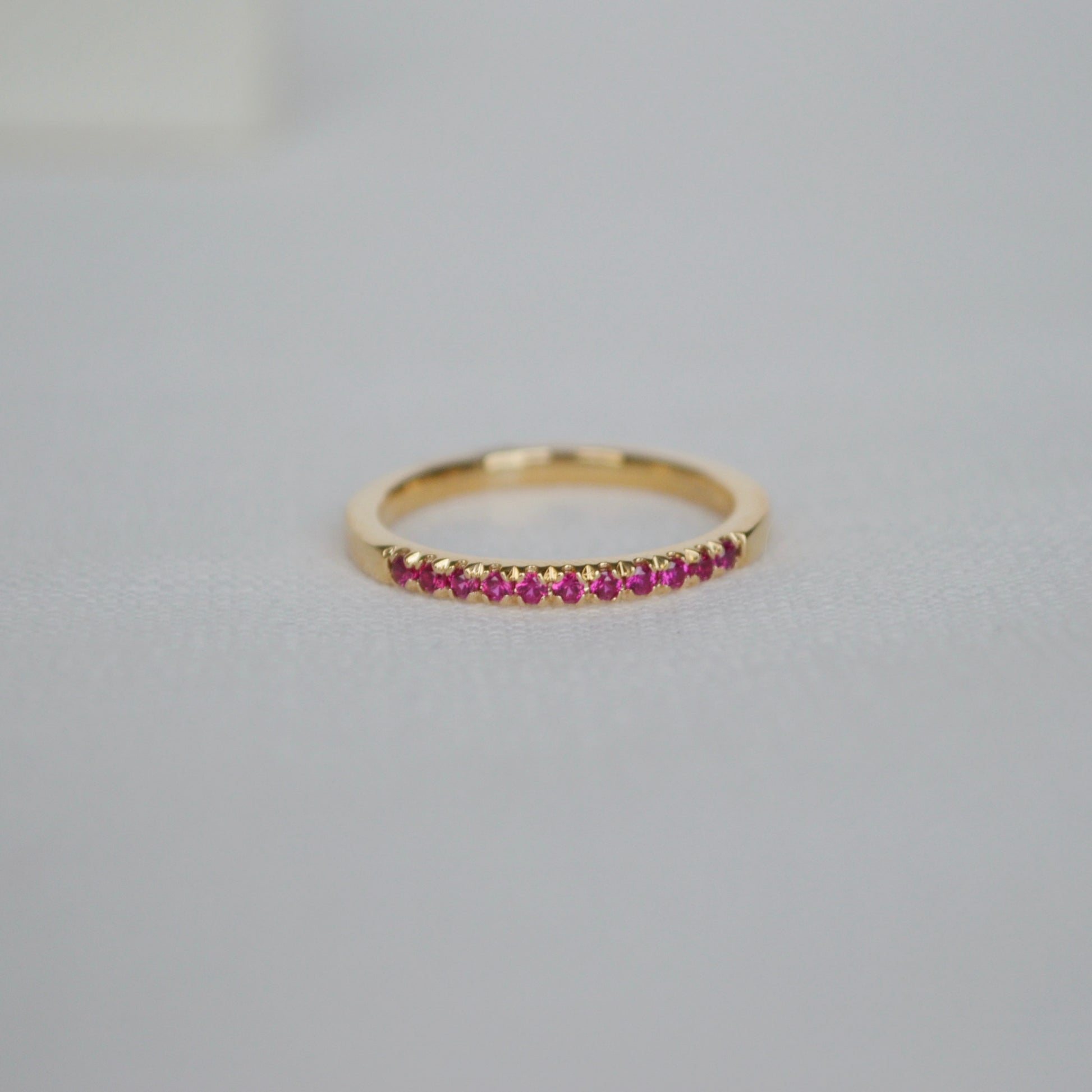 Celebra la pasión y el coraje del mes de julio con esta churumbela de rubíes en oro amarillo de 14 quilates. El rubí, piedra de julio, simboliza amor intenso y prosperidad. Ideal como regalo o joya personal de alto impacto.